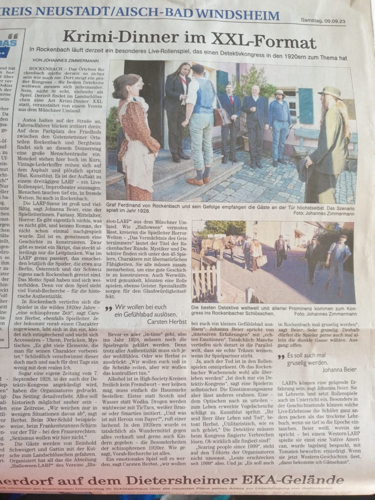 Halloween LARP präsentierte einen Mystery-Krimi-Horror-Con, der in den schillernden 20ern handelte. Die SCs konnten rätseln, schaudern, frohlocken, lästern, leiden, leiden lassen, rächen, bezirzen, verraten, verdächtigen, verprügeln und einige wenige konnten auch taktisch fliehen.